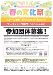 それに伴い、イベントの出演団体とワークショップの出展団体を募集します。ダンス・合唱・その他舞台パフォーマンスや参加型ワークショップで春の文化祭を大いに盛り上げてください!