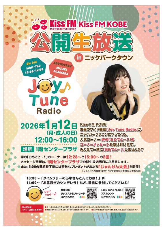 Kiss FM KOBE お昼のワイド番組「Joy Tune Radio」がニッケパークタウンにやってくる。
