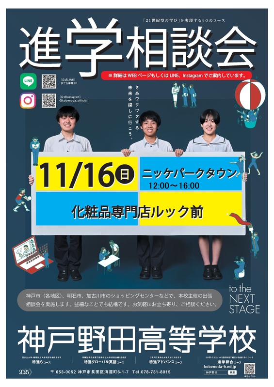 神戸野田高等学校主催の個別相談会を実施いたします。