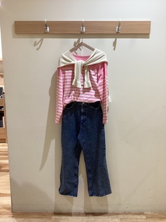 パネルボーダーバスクシャツ×デニムパンツで、爽やかな春コーデに! カーディガンを羽織れば、こなれた印象に仕上がります! パンツはS-Lサイズ展開があり、ぴったりの丈感を選べるのも嬉しいポイントです!