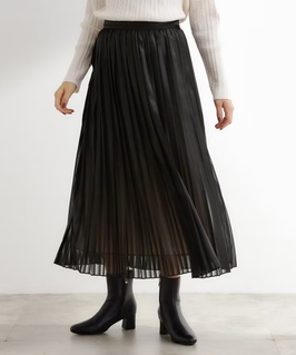 シアー×チンツ加工の プリーツスカート。 やや光沢のある 素材と透け感のある 素材が交互に 織り込まれた生地で、 歩くたびに さりげない 華やかさを演出します♪ ウエストは 後ろゴムで ラクな穿き心地ながら、 脇にファスナーを つけて着脱も スムーズに仕上げました◎