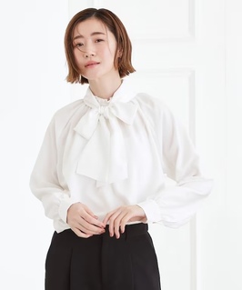 ボウは取り外し 可能で、さらに 前後2WAY仕様 なので、シーンや 気分に合わせて 自在にアレンジできます。 ラグランスリーブで ほどよい リラックス感もあり、 セレモニーから デイリーまで 活躍するデザインです◎