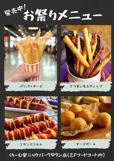 くりーむ堂にお祭りメニューが登場しました! フランクフルト パリパリチーズスティック さつまいもスティック チーズボール 甘いもの食べたら塩味が欲しくなる 塩味を食べると甘いものが欲しくなる 甘さ×塩味で満足度も倍増! 店内調理て熱々で提供! ぜひご賞味あれ★