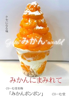 くりーむ堂といえば…みかんボンボン 色んなメディアにも取り上げられ、くりーむ堂マニアの方は1度はたべたことがあるのでは無いでしょうか!! たっぷりのみかんとホイップとソフトクリームが相性バツグン! 見た目もこだわってます♪