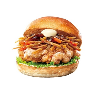 チキン竜田に、国産のごぼうとにんじんを使用したきんぴらを合わせ、特製てりやきソース、レタス、マヨネーズなどとともにふんわりもっちり食感のバンズで挟んだ商品です。また特製旨辛ソースを合わせた、旨辛鶏ごぼうバーガー 価格590円も販売します。