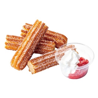 苺の果肉がごろっと入ったソースとホイップクリームに、チュロをディップしてお楽しみいただくスイーツです。 また、苺ミルクパイ(価格250円)も販売します。