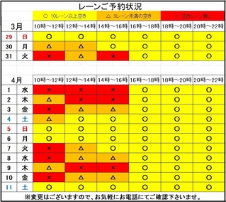 【レーンのご予約状況】