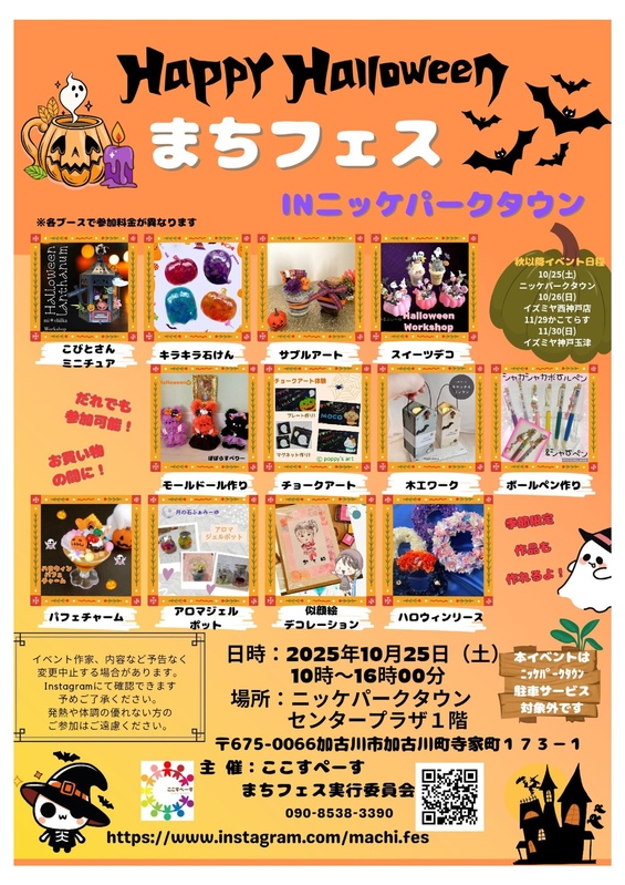 主催:ここすぺーす まちフェス実行委員会 090-8538-3390 後援:加古川市教育委員会 ※本イベントは駐車サービスの対象外です。