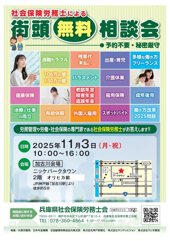 相談会に関するお問合せは 078‐360‐4864へお願いいたします。【9:00~17:00(土日祝除く)】