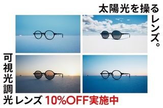 可視光線と紫外線を感知、カラー濃度が自然に変化する「可視光調光レンズ」が10%OFF! 室内ではクリアに。屋外やクルマのなかではサングラスに。 いつのあなたも、どこのあなたも、もう太陽の光に惑わされない。 眩しさから目を守るだけでなく紫外線を99%以上カットし、 様々なシーンで幅広く活用できる「可視光調光レンズ」が期間限定で10%OFF。 ぜひこの機会にご利用ください。 ■実施期間 店舗:2026年4月9日(木)~5月13日(水)迄 オンラインショップ:2026年4月14日(火)10:00※予定~5月14日(木)9:59迄 ■対象 JINS・RIM全店、オンラインショップ ※一部店舗では、開催期間や割引率が異なります ■注意事項 ※期間中に何度でもご利用いただけます。 ※(店舗では)その他割引やキャンペーンとの併用はできません。 ※作成日数は7日~10日ほどいただきます。 ※セール品との併用は可能です。 ※JINS SCREENレンズを組み合わせたレンズは全て対象外です。 ※本キャンペーンは予告なく変更・終了させていただく場合がございます。