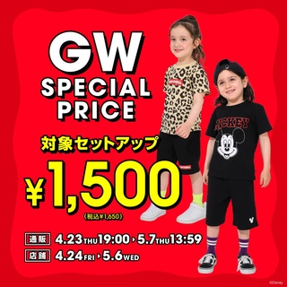 ―――――――――――――――――――― Golden Week限定!! \\均一SALE// ―――――――――――――――――――― \\対象商品// ■BABYDOLL*セットアップ■ ■DISNEY*キャラクターセットアップ■ Golden Week限定で!! 対象セットアップが1,500円(税抜)均一に!!! 100㎝~150㎝まで!! *数量限定発売の為無くなり次第終了です* 5月6日までの限定価格なので 是非お買い得期間に、お店にお越しください♪