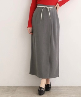 すっきりとした シルエットの ラップナロースカート。 ウエストには 合皮の細ベルトを あしらい、 シンプルながら クラシックな アクセントをプラス♪
