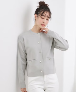 同素材の ニットフレアースカートと セットアップで 着回せる、 クルーネックの ニットカーディガン。 すっきりとした クルーネックに、 上品なパール調ボタンを 添えてきれいめな 印象に仕上げました♪